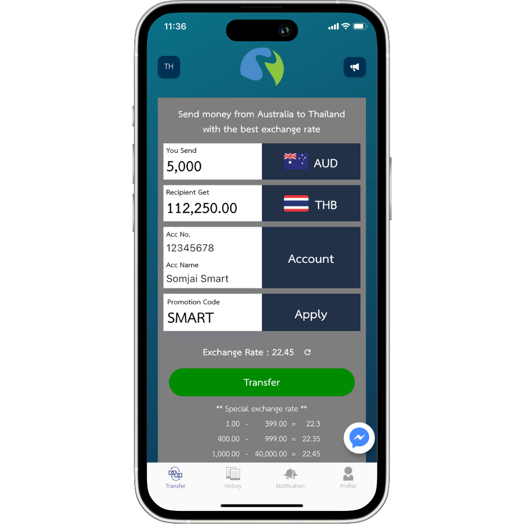 การโอนเงินข้ามประเทศจะไม่ใช่เรื่องที่ยุ่งยากและชักช้าอีกต่อไป เพราะเราสามารถส่งเงินของคุณไปยังปลายทางในประเทศไทยได้ในเวลาเพียง 30 นาทีเท่านั้น!